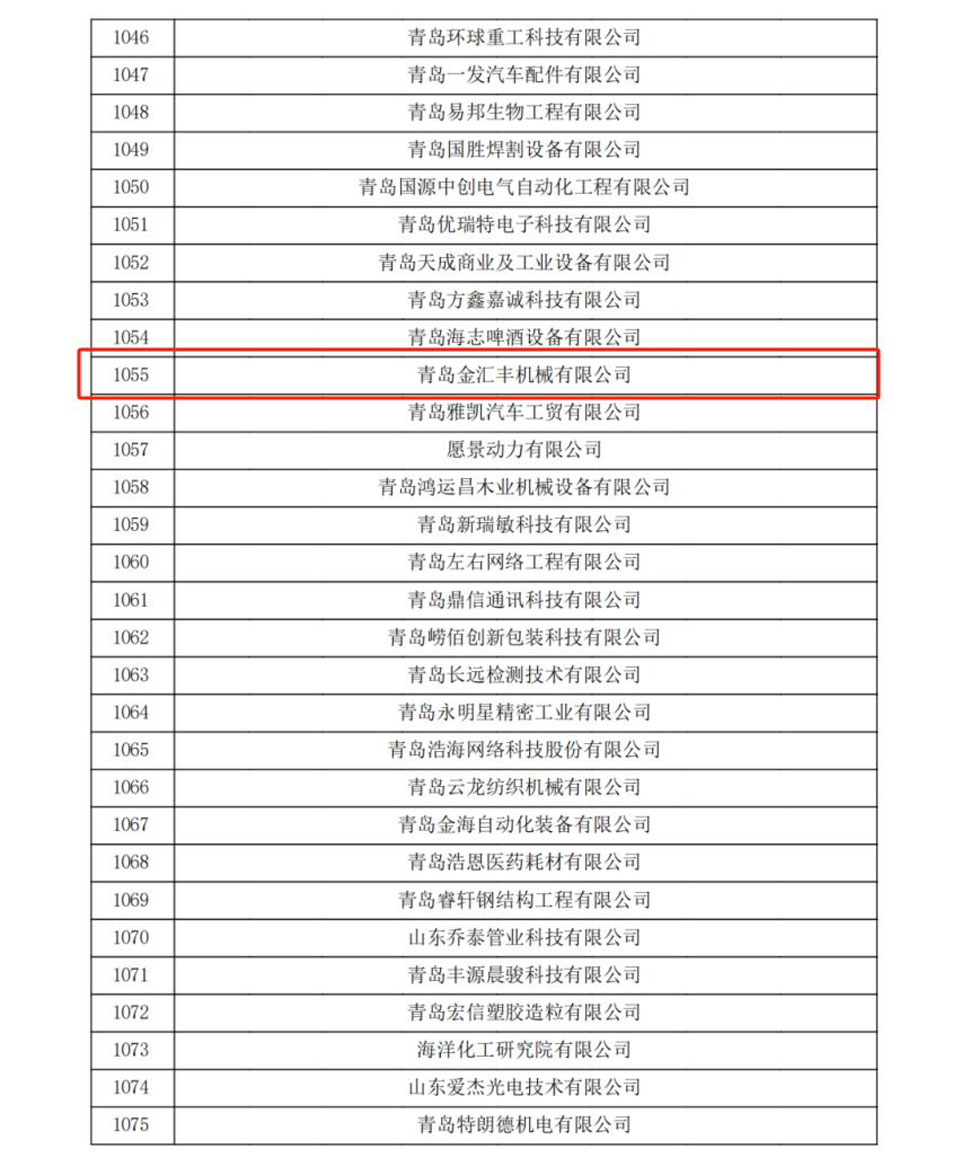 11月9日,全國高新技術(shù)企業(yè)認定管理工作領(lǐng)導(dǎo)小組辦公室下發(fā)了《對青島市認定機構(gòu)2023年認定報備的第一批 高新技術(shù)企業(yè)擬進行備案的公示》,青島金匯豐機械有限公司榮列其中,順利通過國家“國家高新技術(shù)企業(yè)”復(fù)審。