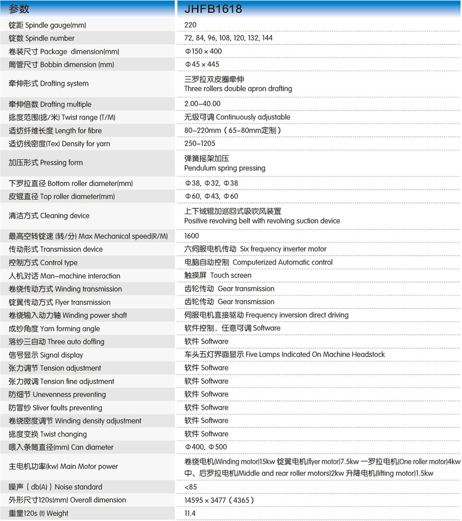 型號(hào) JHFB1618六軸聯(lián)動(dòng)全伺服毛紡電腦粗紗機(jī)