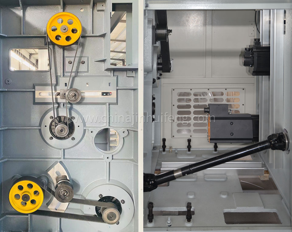 錠翼和筒管采用齒輪或同步帶傳動(dòng),轉(zhuǎn)速大于1600r/min,傳動(dòng)平穩(wěn),噪聲低,效率高;