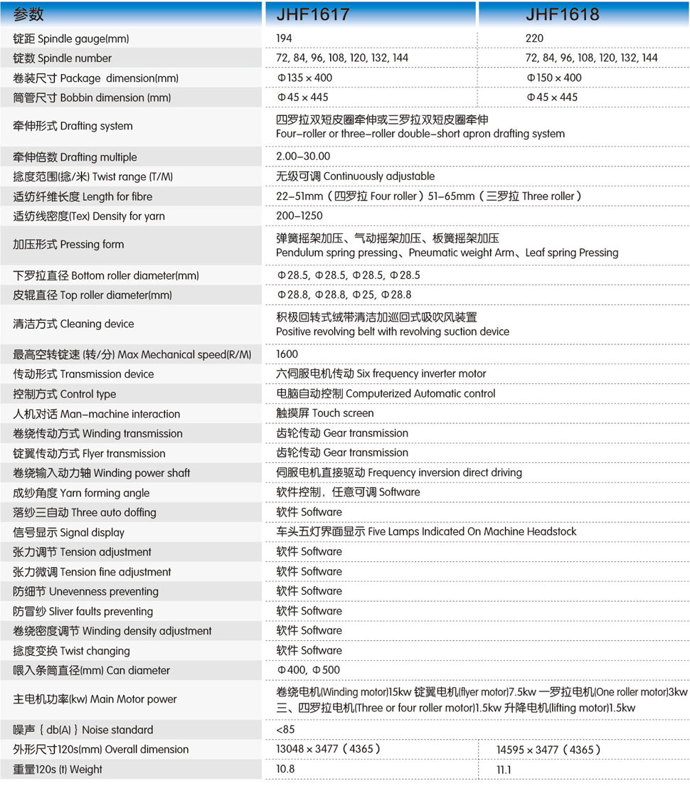 JHF1617/JHF1618全伺服棉紡電腦粗紗機(jī)優(yōu)點(diǎn):